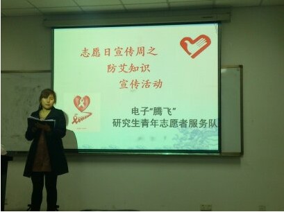 “腾飞”研究生青年志愿者服务队主办的“国际志愿者日宣传周之防艾知识宣传活动”在基础教学楼A303隆重举行。此次活动吸引了来自多个学院的同学积极参与。主持人李玉贞同学通过自己的志愿者亲身经历为同学们介绍了青年志愿者的相关发展现状,并为大家普及了预防艾滋病有关知识。其中问答环节中同学们广泛参与并踊跃回答了志愿者相关问题,活动气氛热烈。MX动漫
