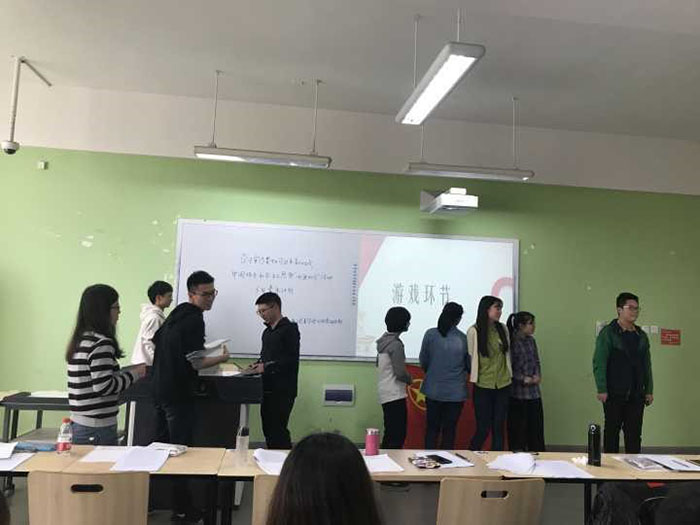 一段严肃认真的学习之后,来到了轻松的游戏环节,该游戏名为“你画我猜”,主要考验同学们之间的配合度。各班团支书上台分成两组,共同参与,游戏现场气氛十分活跃。大家形象生动地描绘,绞尽脑汁地猜答案,并从中体会到了合作与交流的重要性。利用活动中间的放松时间,各班团支书之间有了更加深入的了解。