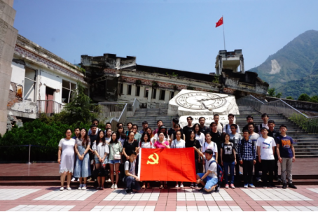 2014级本科毕业生三个党支部在学院学生科吴秀玲老师、何惠老师、陈晓娟老师、陈林老师带领下以参观地震遗址和灾后重建的形式,开展了“十年映秀、感恩奋进”爱国主义教育主题活动。
