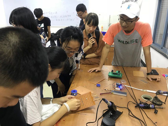 大一的新生们在学长学姐的带领下,按照班级顺序,依次进入科技园进行参观。他们首先来到了宣传部。一进入宣传部,一幅幅精美的海报便呈现在新生们的眼前。这些海报有些是平面的,有些是立体的,各有各的风格。而宣传部的部长们则在一旁向同学们介绍制作这些海报的背景,以及海报本身所象征的意义。参观完宣传部后,科技园的吕颂副主席和外联部的部长们一起向同学们介绍科技园举办过的一些活动。期间,同学们还积极询问一些有关科技园的情况,学长学姐们都很热心地为同学解答,让同学们对科技园有了更多的了解。同学们接下来进入到了行政部。同学们在这里进行了一些基础的焊接体验。同时,行政部的王绎涵副部长积极地与新生们互动,询问他们对科技园的印象,还对同学们一些学习生活上的疑问进行了解答,场面十分热闹。最后同学们来到了技术部。在这里,同学们见识到更多的科技成品,被它们蕴含的科技之美给深深吸引。时间也在这样美好的享受中流逝,此次的游园活动也到了尾声。