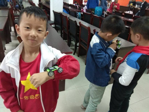 这次活动组装的小手工是太阳能小车。小朋友们知道后都很好奇。首先,活动负责人给小朋友们简单讲解了太阳能小车的原理和组装的方法。讲解过程中,小朋友们跃跃欲试,在讲解结束之后,他们在纷纷志愿者们的帮助下开始动手组装。图一中,志愿者正在耐心给小朋友讲述组装过程和原理,小朋友们听的津津有味。组装之后,小朋友们看到自己做的小手工都兴奋不已。图二中,小朋友正得意洋洋地向志愿者炫耀自己组装好的小车。快乐的时光转瞬即逝,又到了分别的时刻,下午6时左右,志愿者们和小朋友们挥手告别。