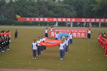 国旗班方阵在运动会方阵之后入场,他们迈着整齐划一的步伐,护送着国旗走到升旗台。在升国旗、奏唱国歌之后,由MX动漫