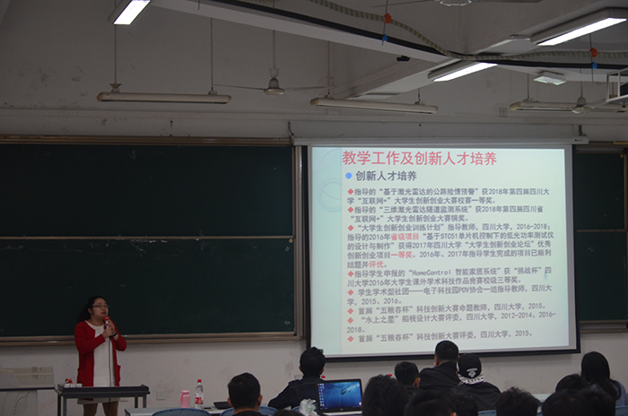 15:30,本次宣讲会正式开始。首先,李玮老师为大家介绍大学生创新创业大赛。李玮老师从什么是大学生创新创业大赛,怎么参与比赛等方面详细地讲解了大赛的相关内容,同时还介绍了自己历年所带小组的一些优秀项目,供大家参考。李玮老师的精彩讲解让同学们对“大学生创新创业大赛”有了初步的认识,同时也激发了同学们的参赛兴趣。随后,郝子祺同学上台为我们分享了“大学生创新创业大赛”的比赛经验。郝子祺同学主要从“大创”的定义,参加“大创”的原因,参加“大创”后的一些必做事项以及参加“大创”的意义等方面层层讲解,深入分析。郝子祺同学的分享更进一步增加了同学们对“大创”比赛的认识。在同学们的阵阵掌声中,本次“大学生创新创业大赛训练计划”项目宣讲会落下了帷幕。