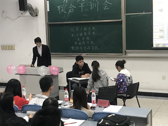 、法学院、华西药学院、轻纺与食品学院、化工学院五院联合举办的团委学生会外联部干训会在江安校区综合楼C座406教室顺利召开。五院2017、2018级团委学生会外联部的全体成员参加了此次干训会。