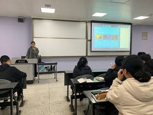 在第一教学楼B201的课堂中,第一组展示的同学简析了时下重要的台独问题,台湾自古以来就是中国领土不可分割的一部分,实现两岸和解是海峡两岸中国人民的共同心愿。第二组上台展示的同学则强调了中国教育公平的重要性,他向同学们表达了小组内通过讨论得出的一致观点:要让教育发展成果更多更公平惠及全体人民,并且以教育公平促进社会公平正义。