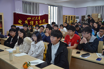在接下来的答疑环节,在场的同学们踊跃提问,两位院长也相应地做出了详细解答。其中一位同学向冯国英院长询问了光学专业的研究方向与毕业前景,冯国英院长为其详细地讲解了光学专业的相关知识。另一位同学则就自身的情况和将来的打算提出了疑问,两位院长也就他自身的情况提出了合理的建议。在活动过程中,冯国英院长和雷印杰副院长还告诫同学们:在本科阶段,同学们一定要认真学习基础知识,这将会对大家将来的深造产生深远的影响。