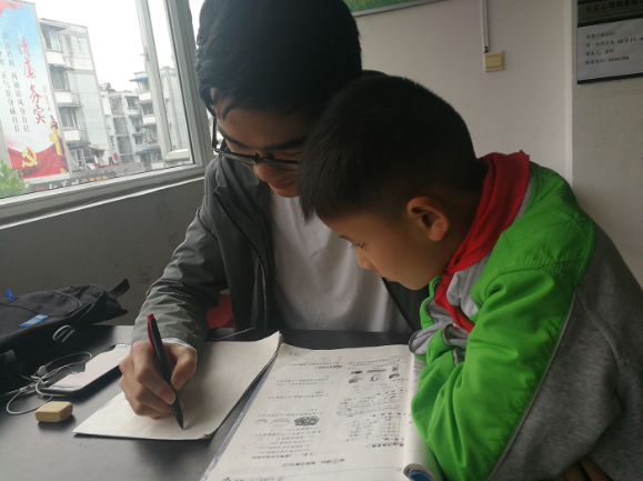 随后,志愿者们辅导小朋友们完成课后作业。遇到不会的问题,小朋友们纷纷举手向志愿者请教。在大家都做完家庭作业之后,志愿者也检查了同学们的作业完成情况,并耐心指出其中的错误,为小朋友们详细分析并讲解。随后,小朋友们告别了志愿者,与父母一同回家。18时左右,志愿者们与服务站老师、工作人员道别。