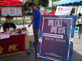 团委学生会宣传部于江安校区青春广场开展了 “青国青城”世界地球日环保主题活动,得到了同学们的热烈响应。