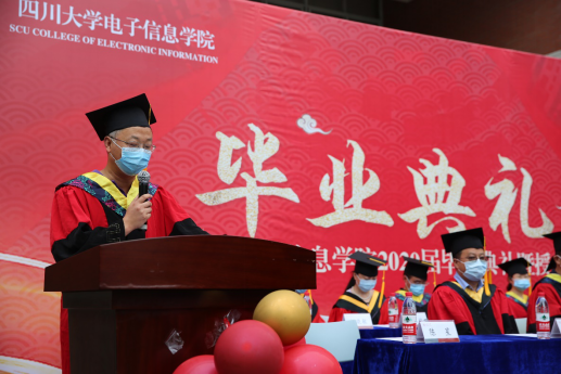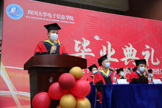 出席典礼的嘉宾有:学院党委书记邰明松、院长冯国英教授、党委副书记陈笃海、副院长张启灿教授、副院长杨阳副教授、副院长雷印杰副教授、博士生导师何小海教授、陈星教授、张彬教授、李大海教授、刘长军教授、张蓉竹教授、陈文静教授、杨晓敏教授、李磊教授。学院相关老师和2020届在校毕业生参加了本次典礼。典礼由副院长雷印杰主持。