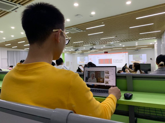的老师同学们准时打开CCTV-4观看纪录片直播。同学们在各个地点开展观看直播活动:寝室里、实验室里、课间十分钟的教室里……