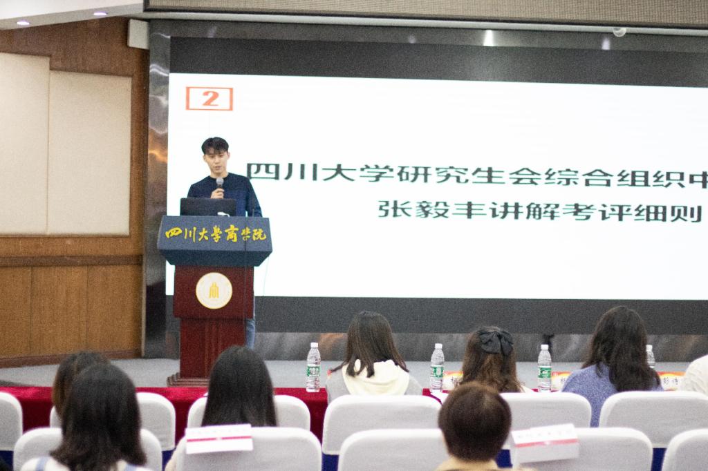 本次会议分为四个议程,依次是团委副书记、研究生会执行主席彭诗睿发表会议讲话;综合组织中心主任张毅丰对考核细则进行讲解;MX动漫