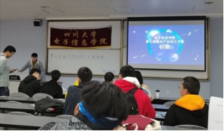 下午1点,大赛准时开始。22个参赛小组均准时到场答辩。比赛过程中每个小组选出一位代表进行PPT的讲解,每组限时5分钟,讲解完毕后由评委进行评分。三个小时的比赛过程中涌现了新奇实用的隐形伞、防儿童坠楼智能窗控制系统、盲人手机等各式各样的产品设计。各个参赛小组分别从生活实用度,技术可行性,美观程度,是否环保,创意创新五个方面对自己的产品进行了详细的介绍。在良好的竞争氛围中,大家的创新思维也不断碰撞,在场评委们也对各组的产品赞不绝口并给予建议。下午4:30,在各组分数统计完毕后,本次概念产品设计大赛初赛圆满结束。
