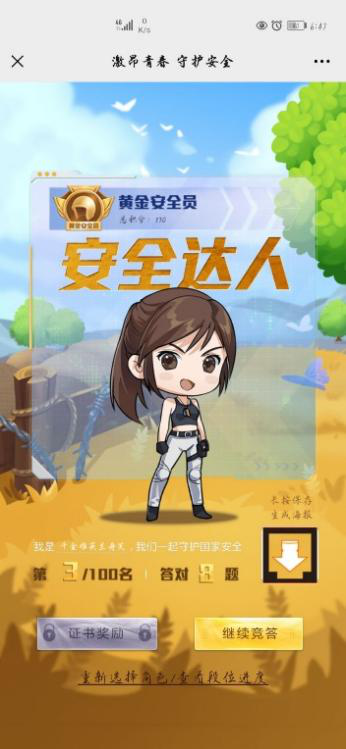 本科生积极参加了线上国家安全知识竞答。同学们以寝室为单位,在相应平台上积极回答有关国家安全的问题。许多同学对国家安全问题都有一定的认识与了解,也在知识竞答当中取得了不错的成绩。在知识竞答这种便捷的知识获取途径当中,许多同学都切实感受到国家安全其实与自己的生活息息相关。