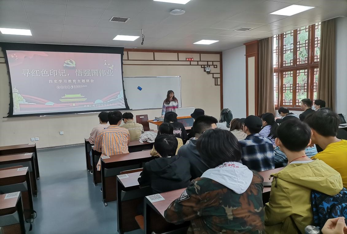 会上,首先由主持人胡佳佳同学以PPT的形式向同学们详细的介绍了“四史”中党史的介绍和背景,使同学们对党的发展历程有了基本的了解,并引导同学们把幸福感内化为对党和社会主义祖国的热爱和忠诚。