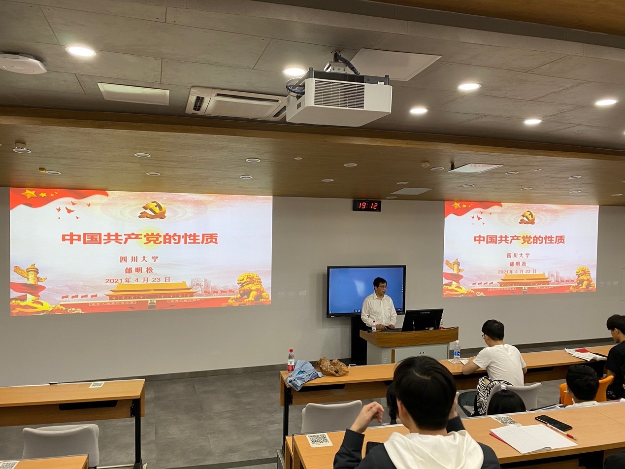 党委书记邰明松主讲,江安校区与望江校区的入党积极分子同学共同参加了此次会议。本次会议主要分为两部分:学生代表宋甜同学发言;邰明松书记为同学们进行培训,讲解中国共产党的性质和成为党员的条件。