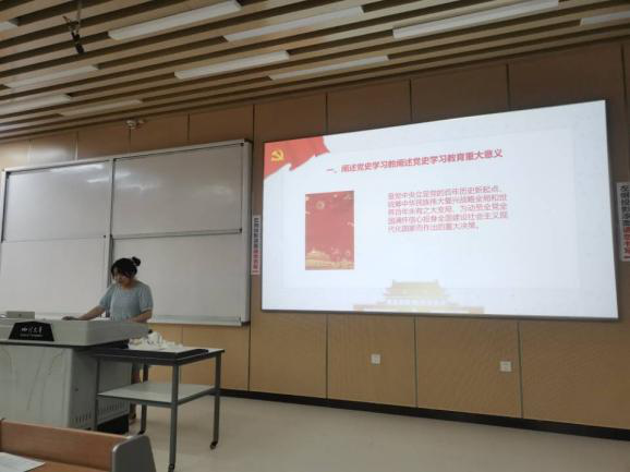 活动伊始,由支部宣传委员鄢雪晴同志带领全体成员共同学习党史知识。鄢雪晴同志首先阐述了党史学习教育的重大意义,她指出百年党史是我们党重要的历史经验,处于百年未有之大变局的时代,学习党史能够激发全党全国的信心投入到全面建设现代化国家的进程中,对大学生而言,学习党史还能坚定对党的信念,更加深刻的明白自己的历史使命。