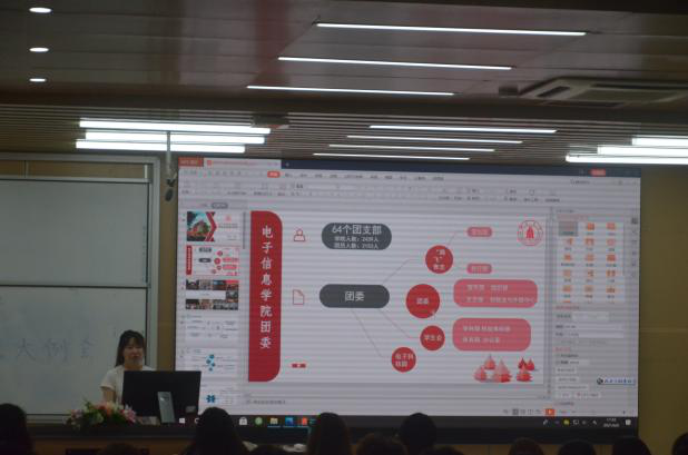 例会开始时,首先由学生会执行副主席王柯程和学生团委副书记何雨主持开场。之后,由每个部门的代表依次上台进行工作总结。团学十个部门分别从部门承办的活动以及在各个活动中所承担的任务、在团学内的作用、部门内部的管理建设和部门团建活动等方面作出了总结。在各部门总结的过程中,汇报人纷纷说到,这一年的团学生活让自己学到了许多技能,结识了很多志同道合的朋友,也在部门内感受到了许多的温暖,比如为部员过生日。同时团学的工作也提高了自己各方面的能力,如人际交往能力。在各个部门总结结束后,MX动漫