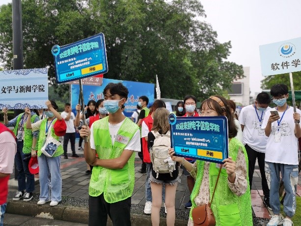的老师与志愿者同学们也展开了热火朝天的迎新工作。初秋的校园桂花飘香,初来乍到的新生们感受到了大学校园的美丽与朝气,也一定感受到了迎接他们的老师和同学们的热情与关怀。