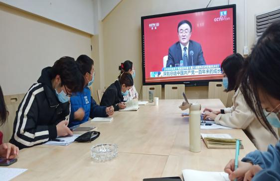 20级本科生第一党支部迅速掀起学习热潮,并在支部书记陈晓娟老师和20级辅导员朱婧老师的带领下,组织支部党员和入党积极分子准时观看党的十九届六中全会新闻发布会。同时,为响应成都市疫情防控的要求,支部决定以小组形式分散观看。