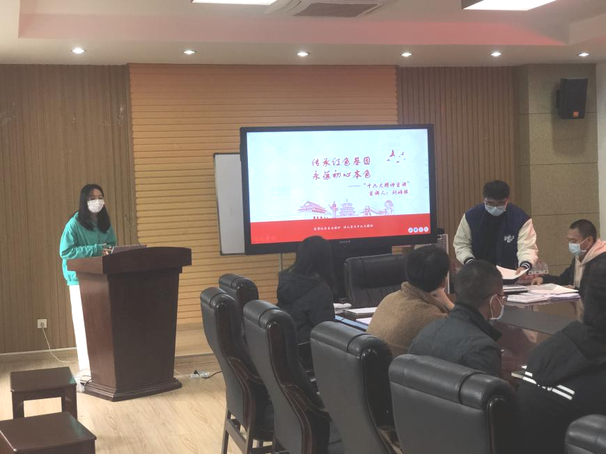 本次宣讲活动的主题是“传承红色基因,永葆初心本色。”刘姝琪同学首先讲解了“什么是红色基因”。在讲解时刘姝琪同学引述了从中国共产党建立到社会主义发展过程中的种种英雄人物的生动事例。这些故事中有“两弹一星尽显忠”的邓稼先,有“怀有老一辈爱国主义精神”的屠呦呦,有“不教饥馑闹神州”的袁隆平,亦有“蜡炬成灰泪始干”的张桂梅。刘姝琪同学在详细讲述他们的光辉事迹后以鲁迅先生的话做小结:“我们从古以来,就有埋头苦干的人,有拼命硬干的人...这就是中国的脊梁”。