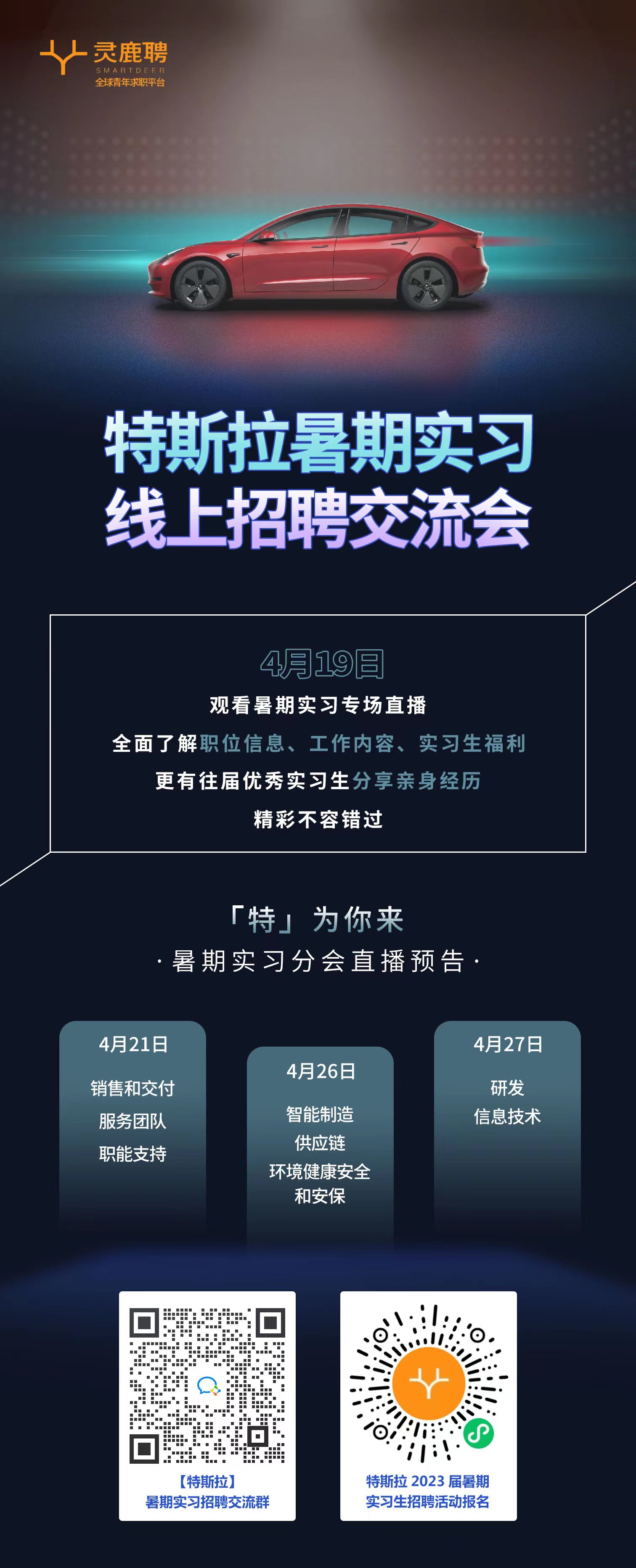 欢迎参加:【特斯拉】暑期实习线上招聘交流会