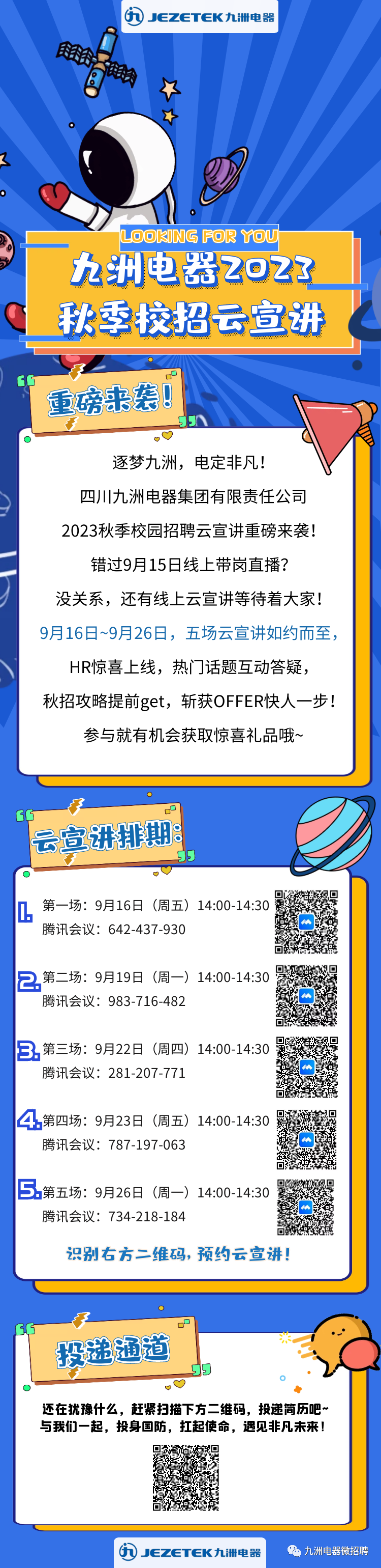 四川九洲电器集团有限责任公司2023秋季校园招聘云宣讲重磅来袭