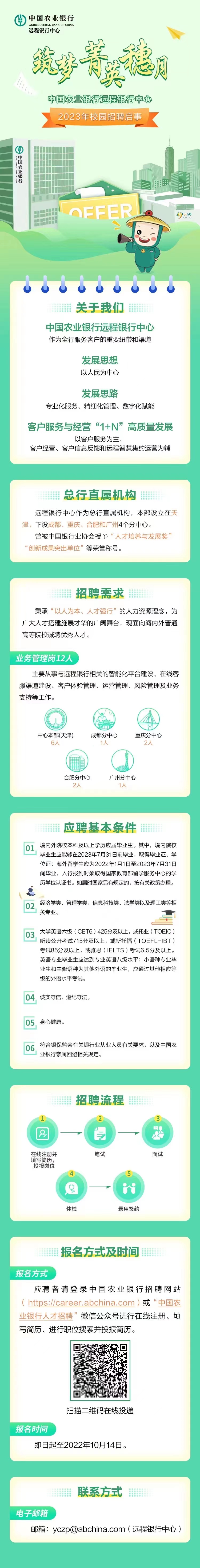 中国农业银行远程银行中心2023届校园招聘
