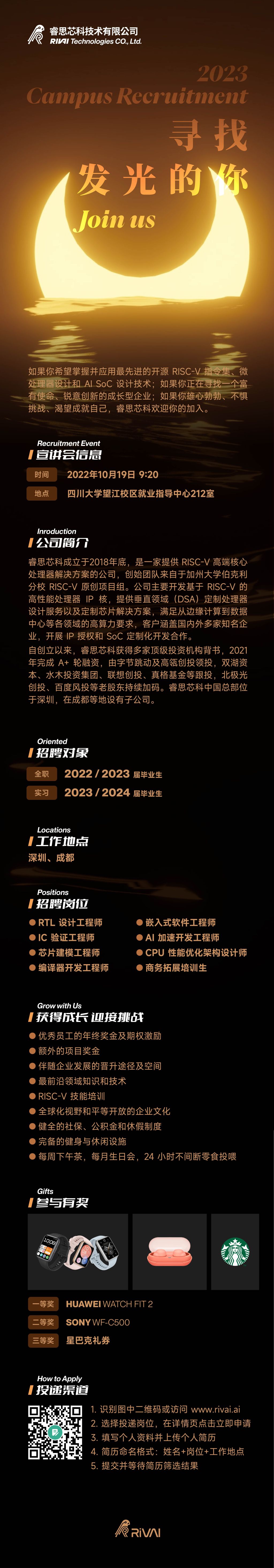 10月19日9:20就业指导中心212室睿思芯科技术有限公司2023届校园招聘