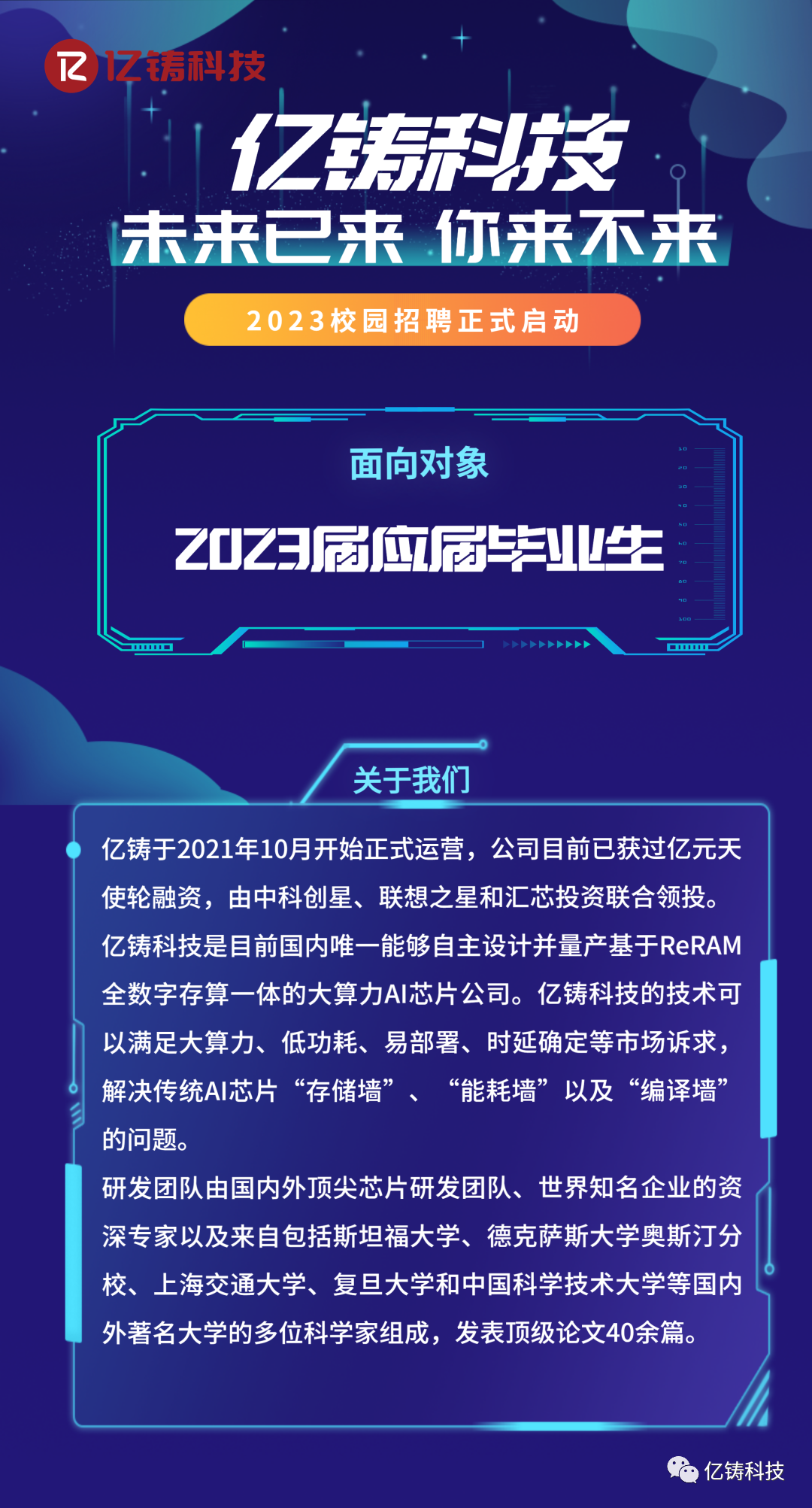 亿铸科技于2021年10月开始正式运营,公司目前已获过亿元天使轮融资,公司在上海、深圳、杭州、成都以及美国硅谷设有研发和销售中心,是目前国内唯一能够自主设计并量产基于ReRAM全数字存算一体的大算力AI芯片公司。