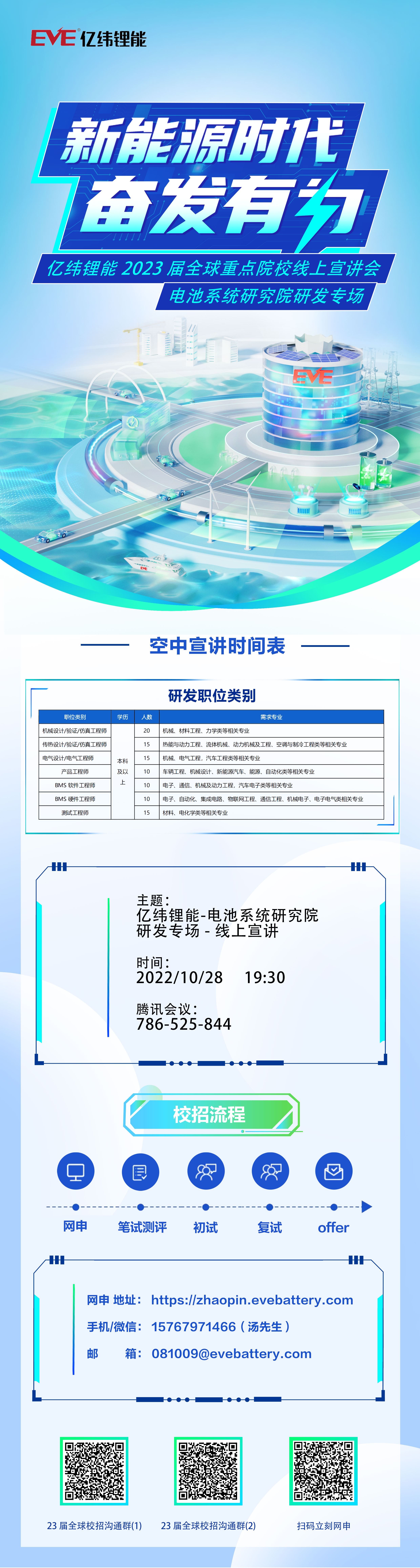亿纬锂能2023届全球重点院校线上宣讲会—电池系统研究院研发专场