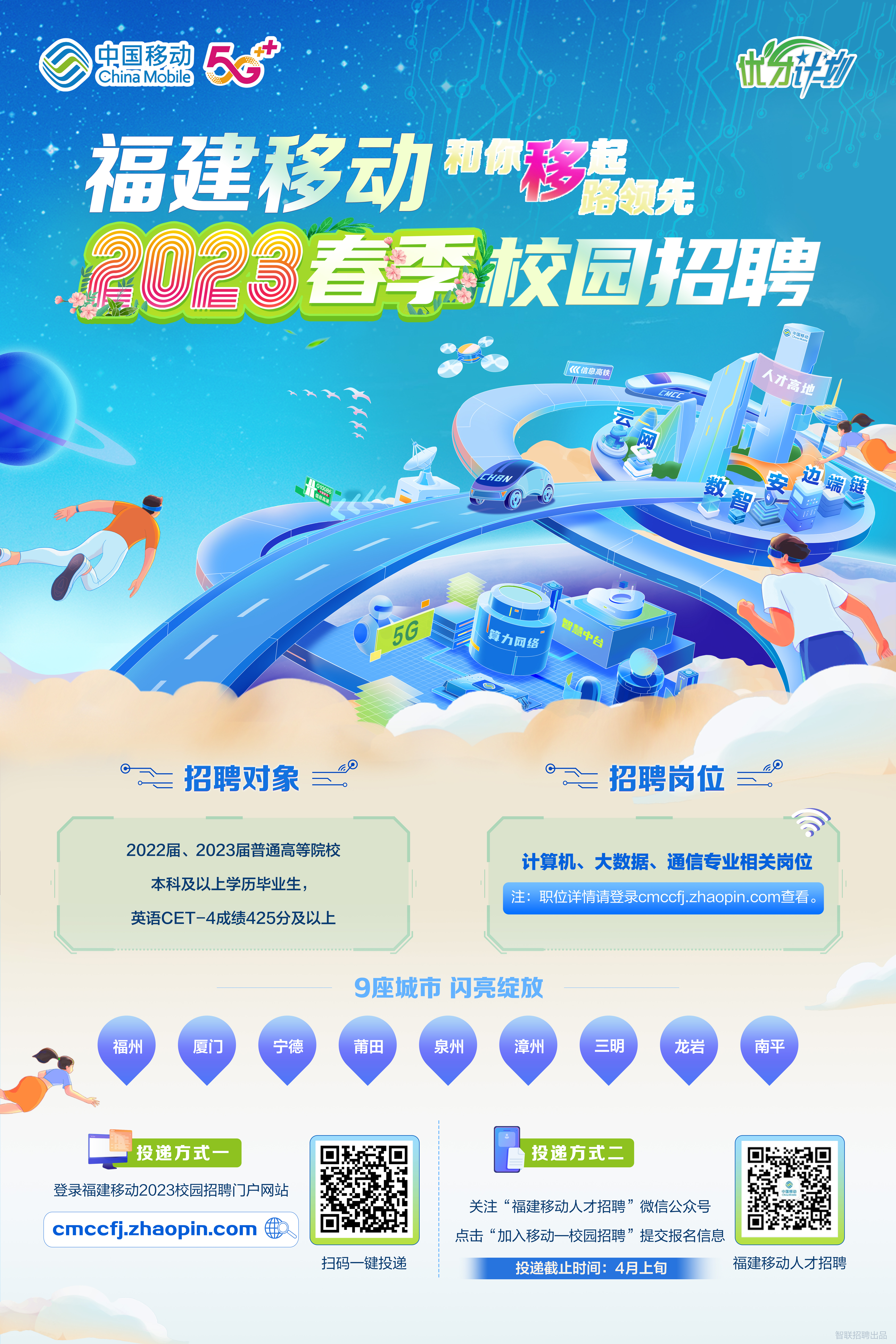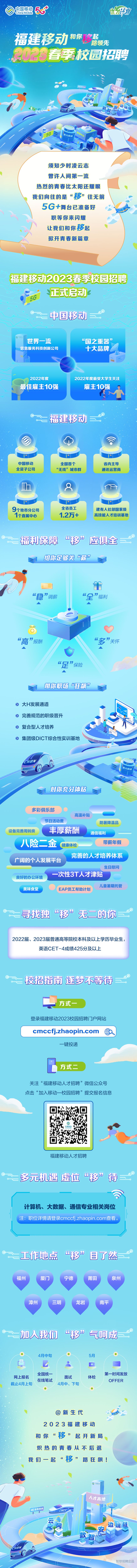 更多详情及后续资讯请密切关注我们的招聘网址(cmccfj.zhaopin.com)或微信。