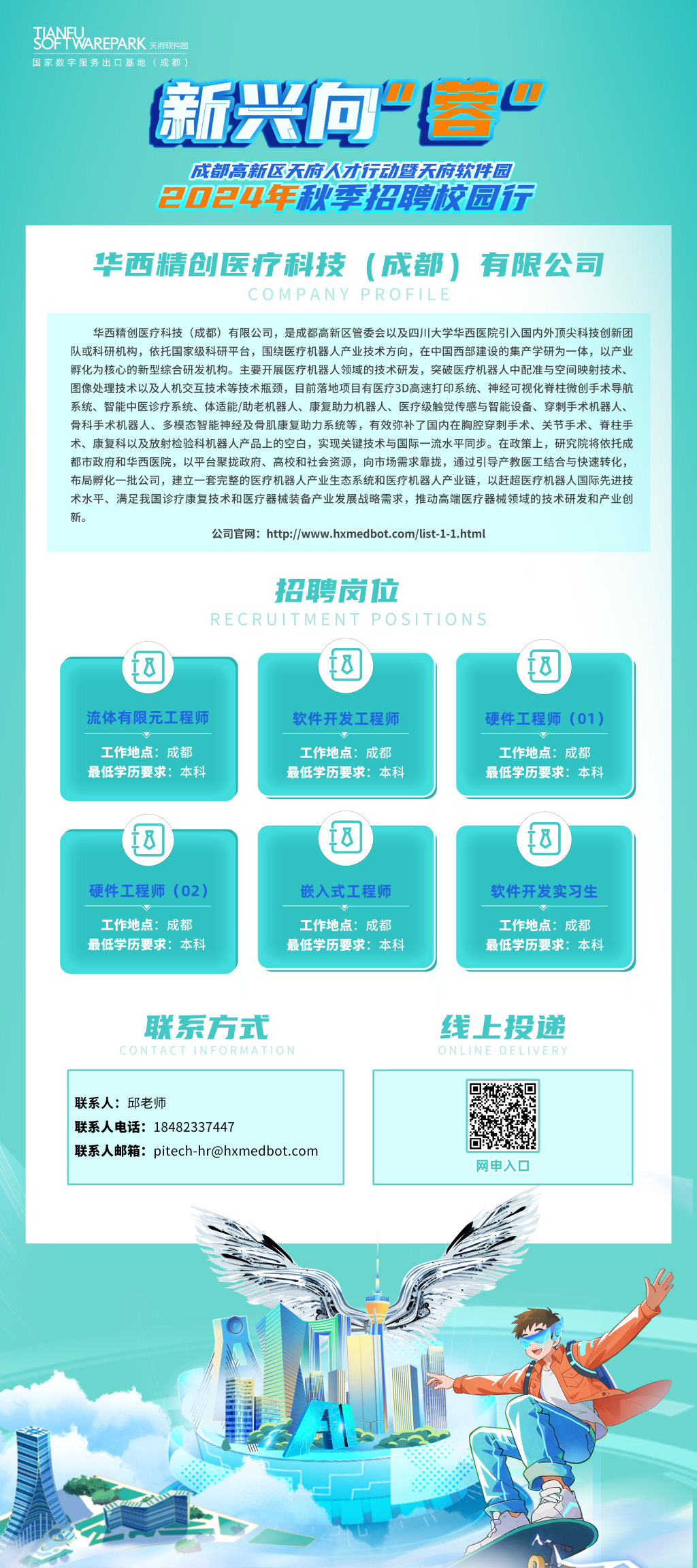 华西精创医疗科技(成都)有限公司2024年秋季招聘