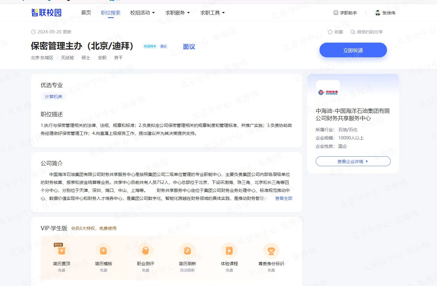 单位在央企中待遇属于中等偏上,户口、宿舍等同学们关心的问题都会提供相应的保障,有意向到北京发展的同学,可以考虑投一下。