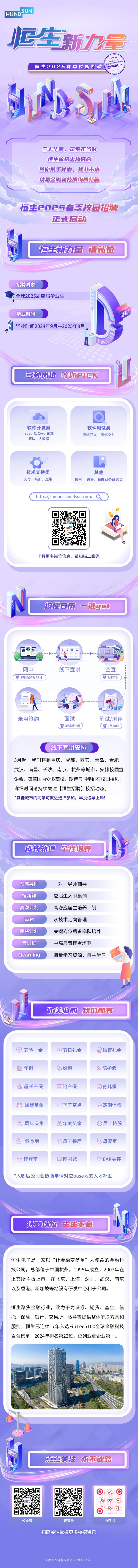 恒生2025春季校园招聘启动了,同学们可以网申啦,地址: campus.hundsun.com