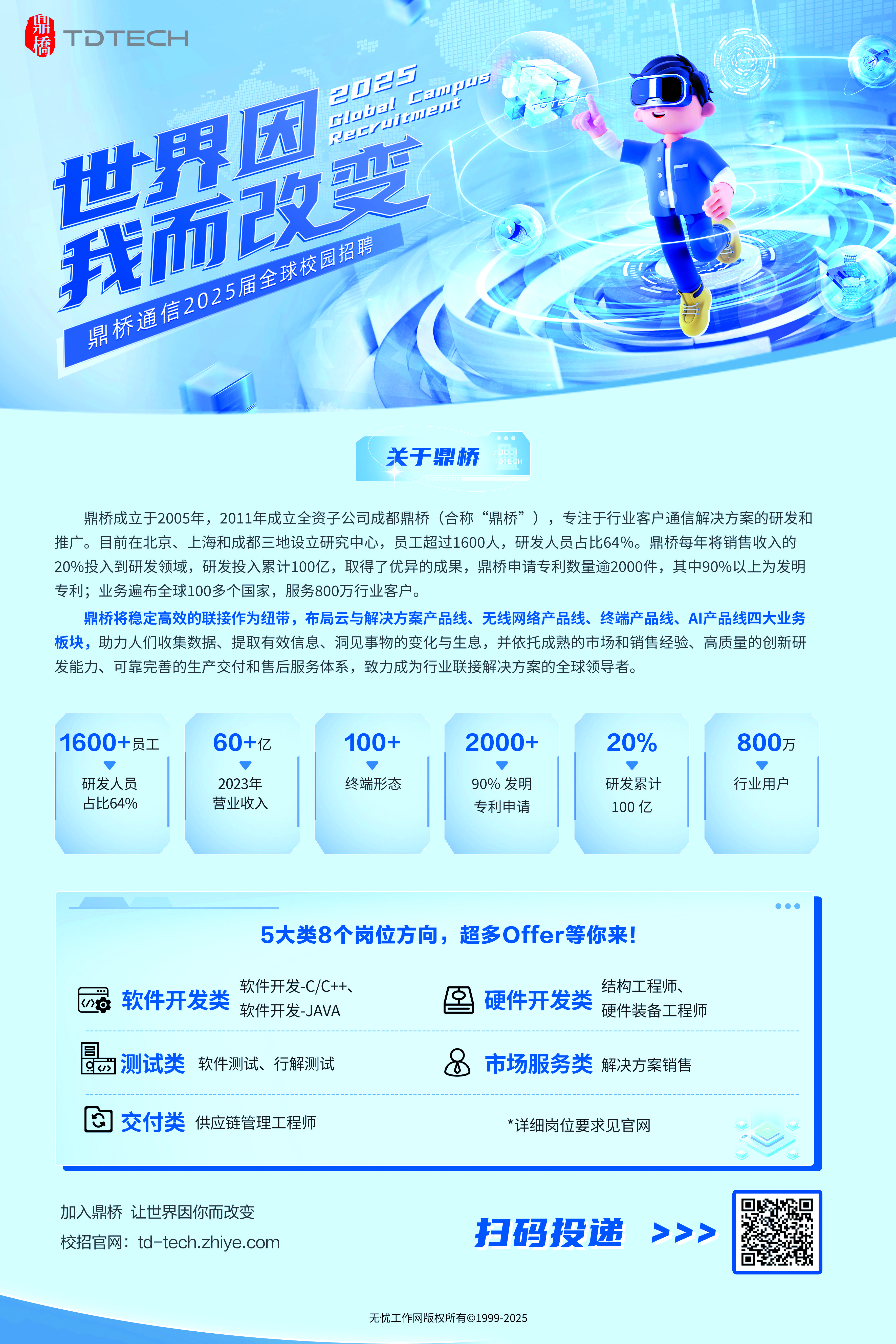 可登录链接:[td-tech.zhiye.com] 选择对应项目进行简历投递,也可以搜索鼎桥招聘公众号进行投递。