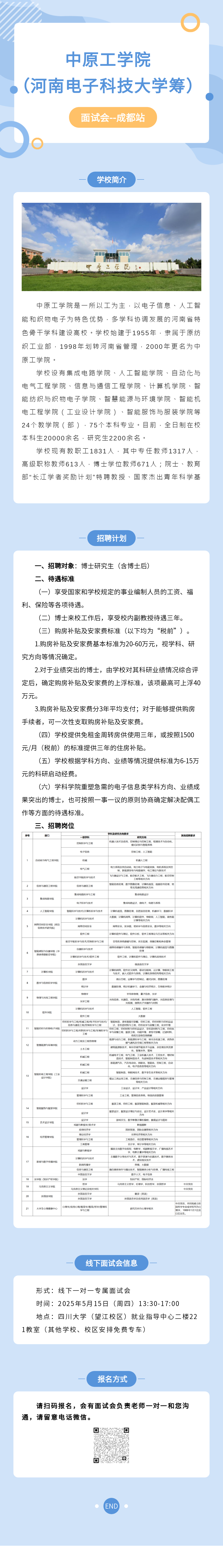 中原工学院(河南电子科技大学筹)2025年博士研究生招聘公告