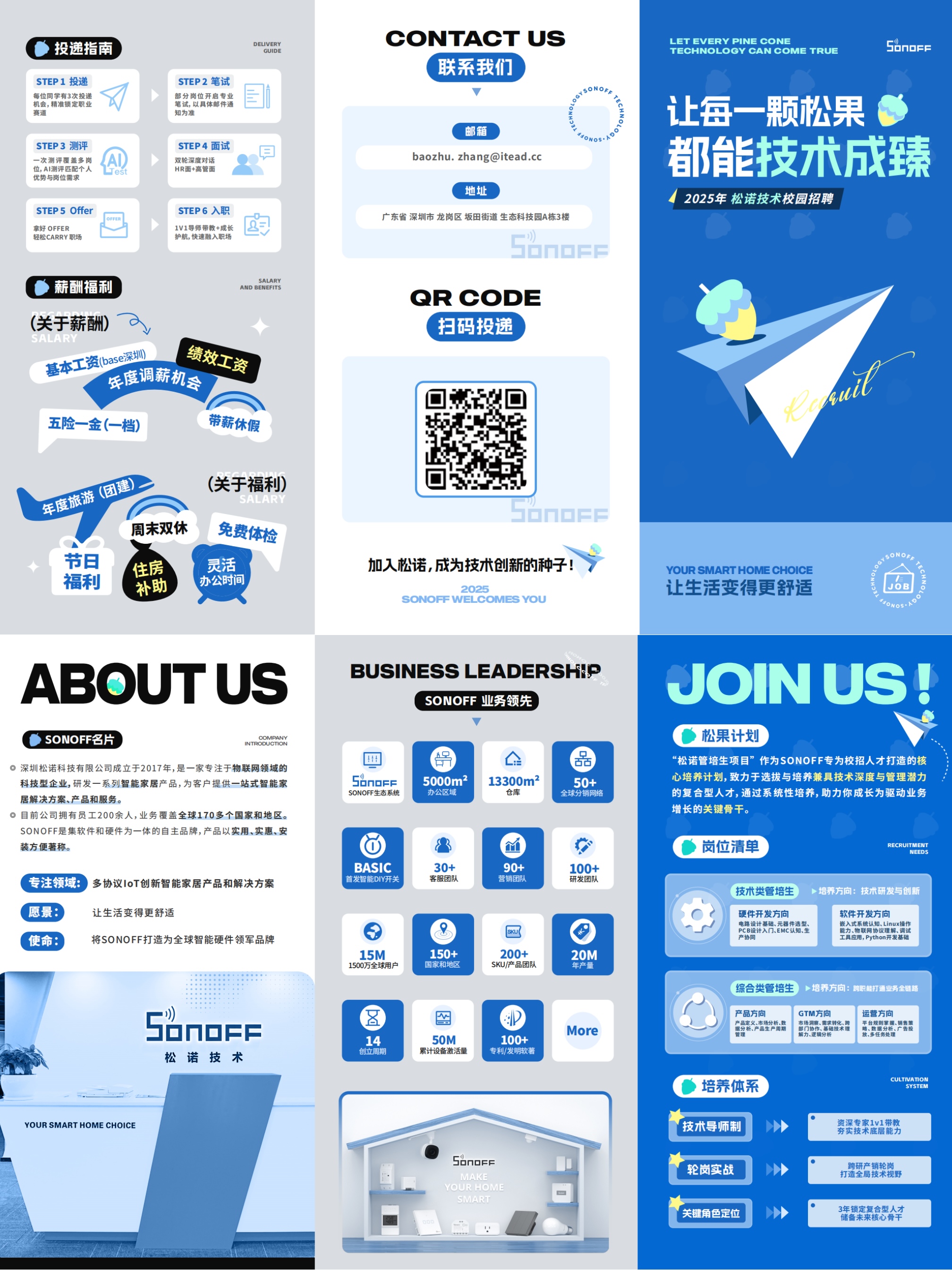 深圳松诺科技有限公司成立于2017年,是一家专注于物联网领域的科技型企业,研发一系列智能家居产品,为客户提供一站式智能家居解决方案、产品和服务。目前公司拥有员工200余人,业务覆盖全球170多个国家和地区。SONOFF是集软件和硬件为一体的自主品牌,产品以实用、实惠、安装方便著称。我们专注的领域:多协议IoT创新智能家居产品和解决方案