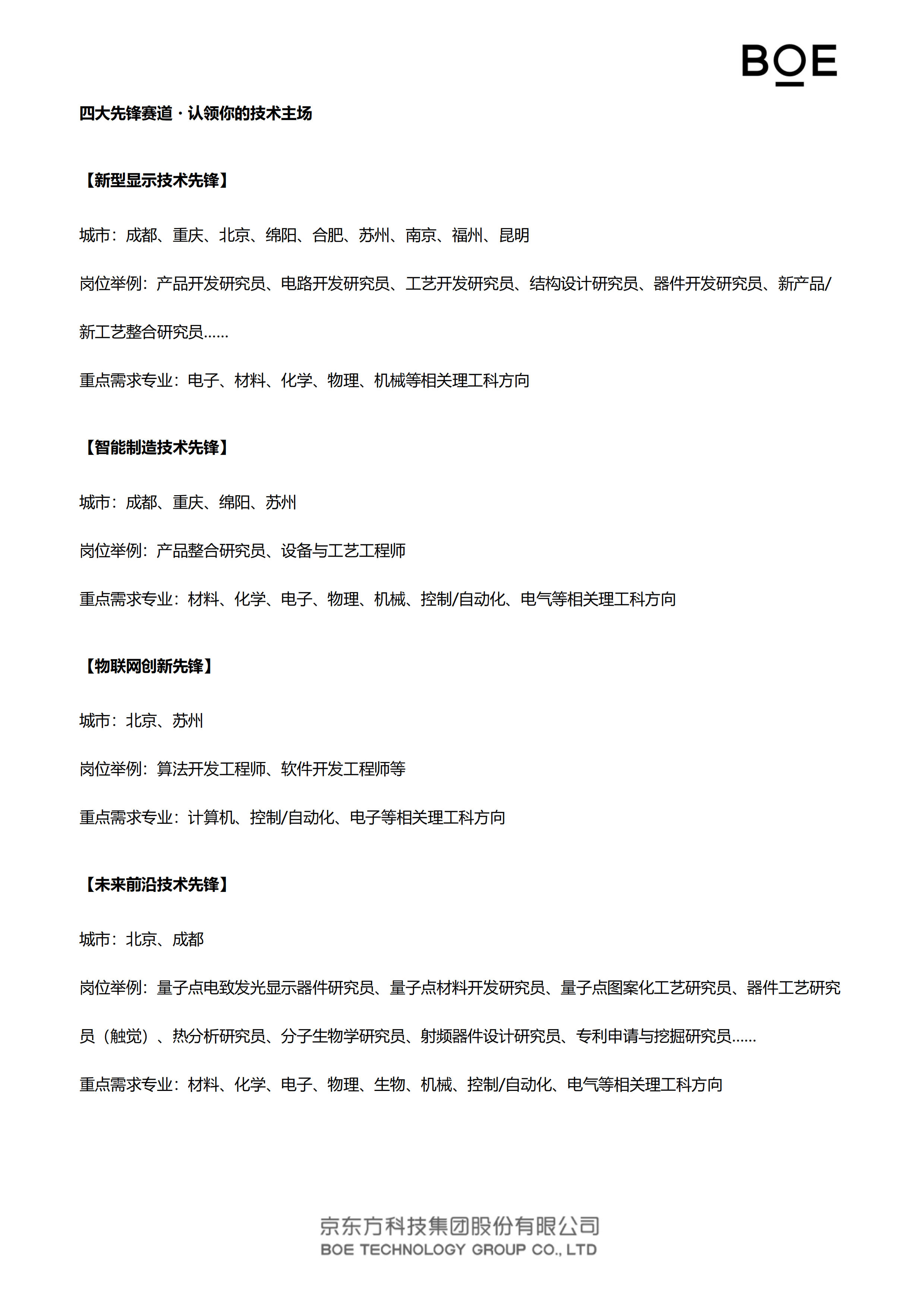 【企业特点】:国有控股,上市企业,市值千亿,半导体显示领域全球第一
