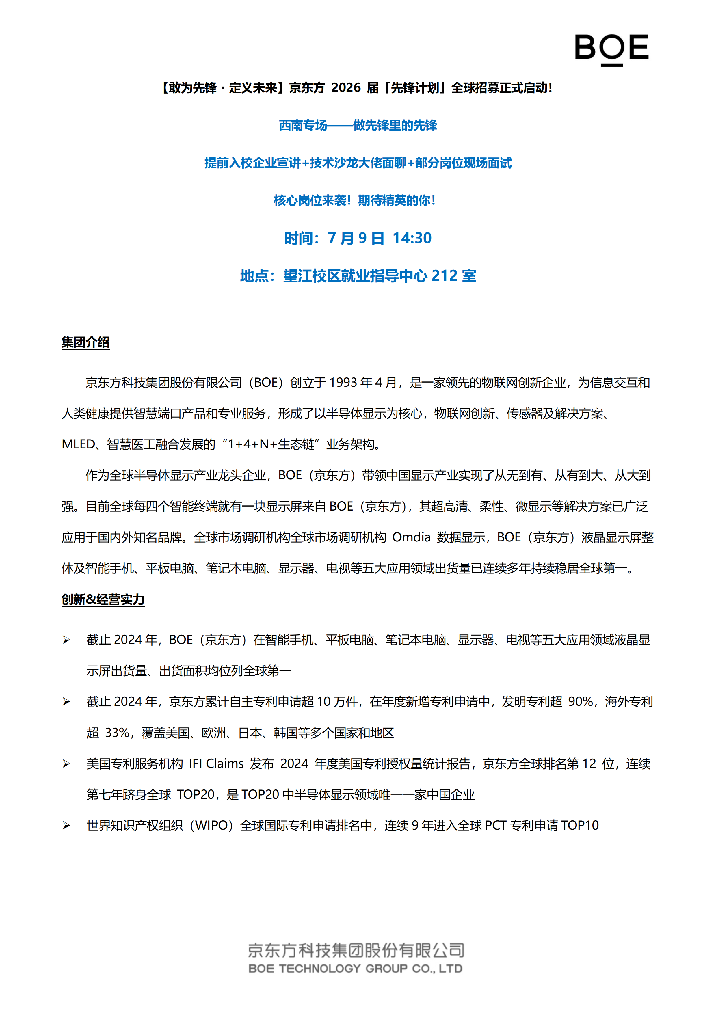 💙京东方2026届先锋计划全球招聘
