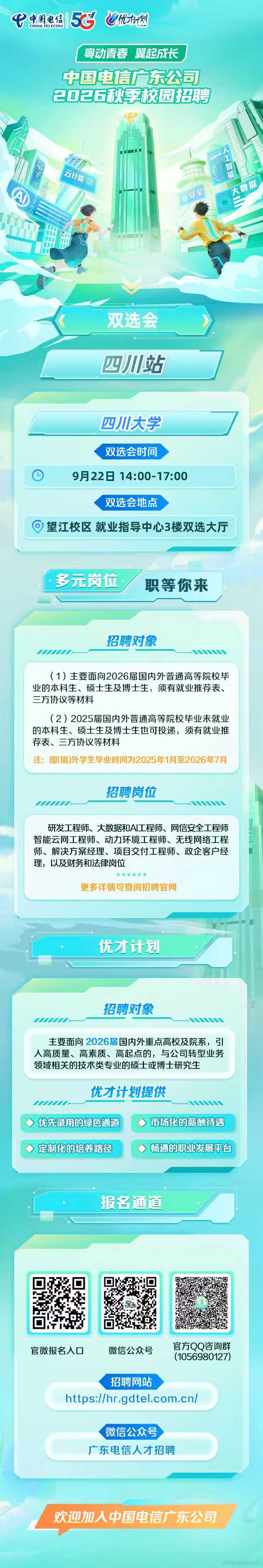 更多招聘信息敬请关注官方公众号:广东电信人才招聘