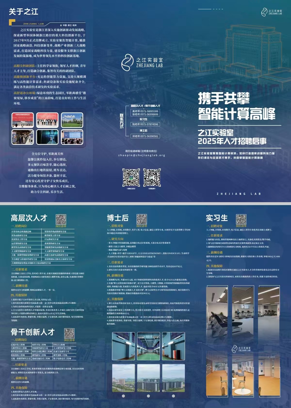之江实验室2025年人才招聘【应届博士(博士后岗位)在读硕士、博士(实习生岗位)】