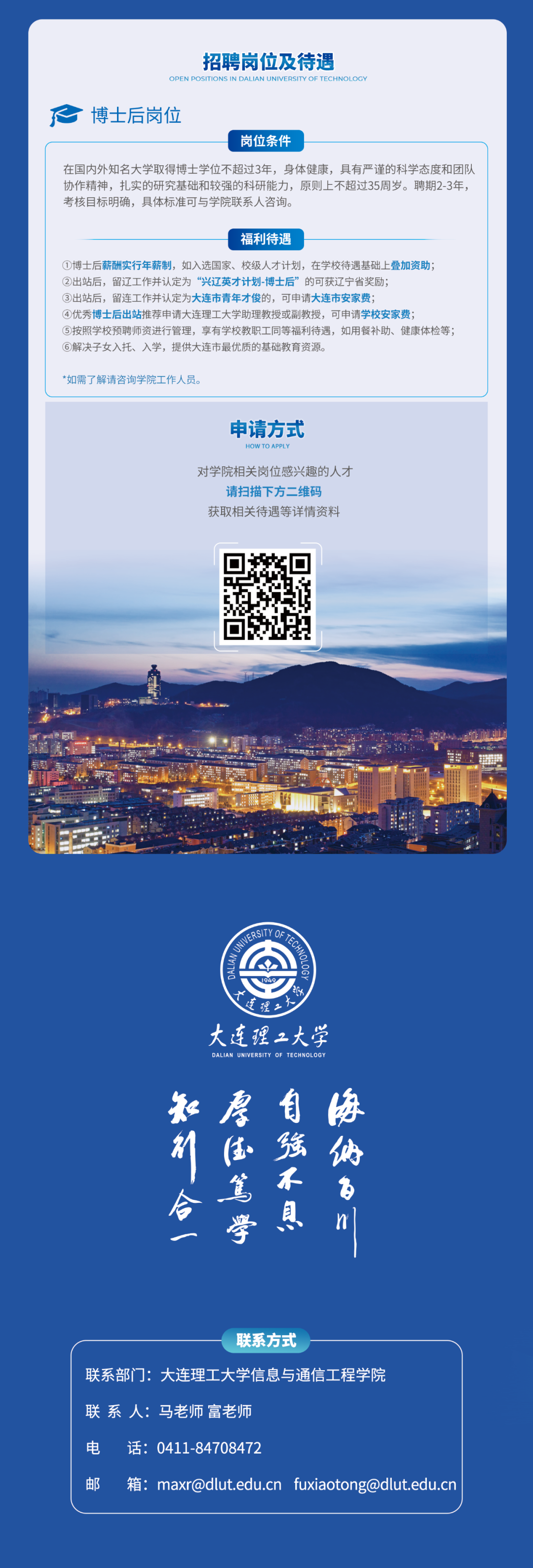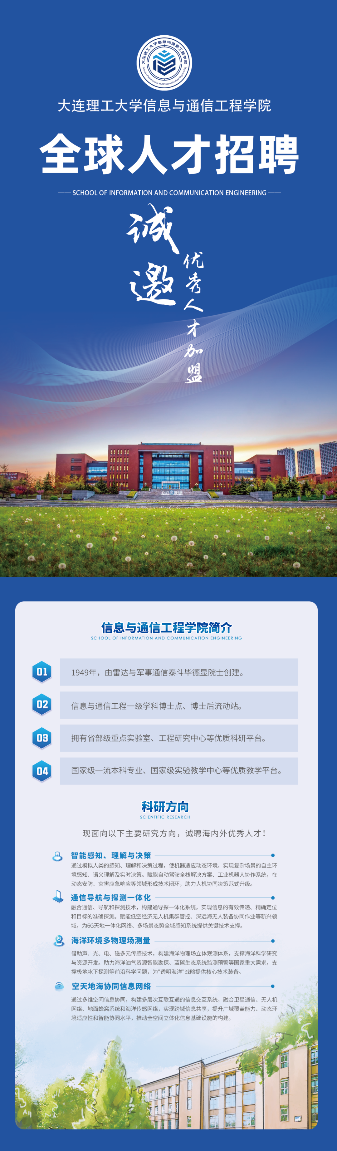 10月22日上午10点基教A402大连理工大学信息与通信工程学院招聘教师或博士后