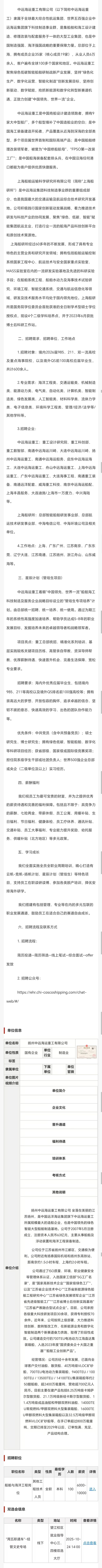 中远海运重工、上海船研所2026届校园招聘
