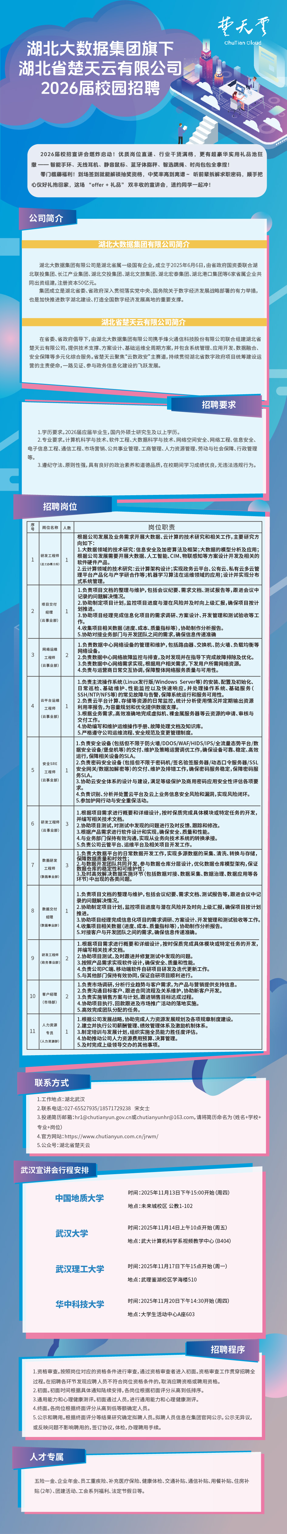 「湖北省属一级国企」湖北大数据集团有限公司旗下湖北省楚天云有限公司,2026 届校招正式启动!