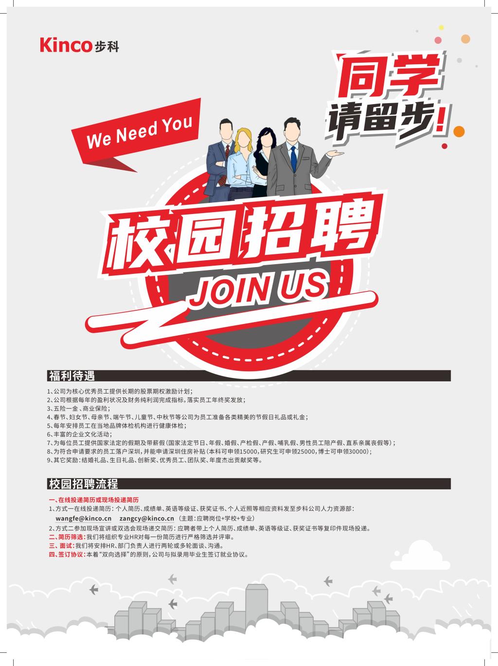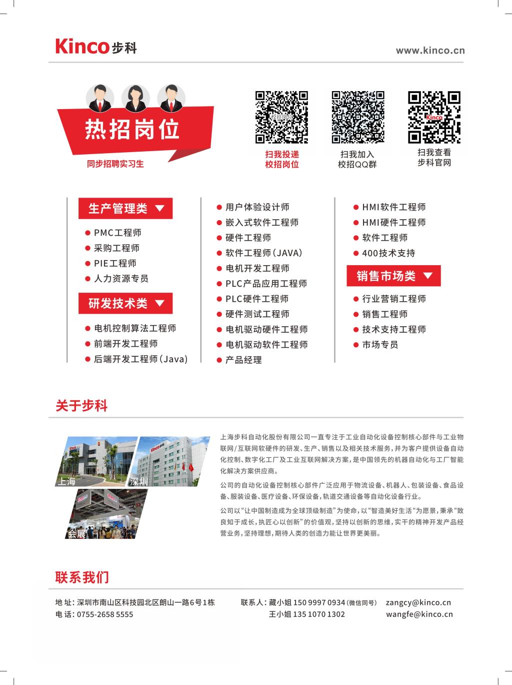 在线投递简历:个人简历、成绩单、英语等级证、获奖证书、个人近照等相应资料发至步科公司人力资源部:[email protected]、[email protected](主题:应聘岗位+学校+专业)