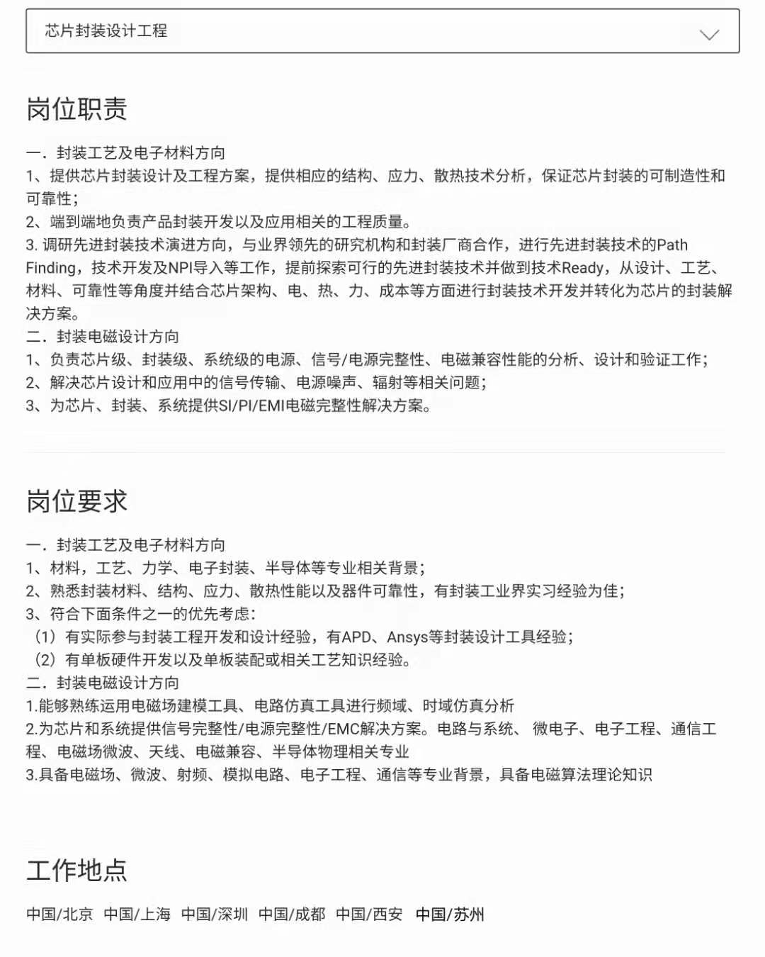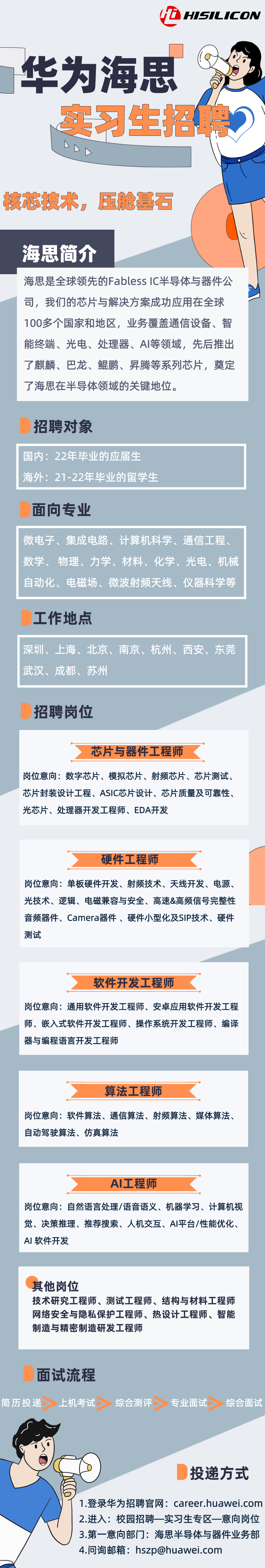 华为海思成都封装部等招聘2021届校招和2022届实习