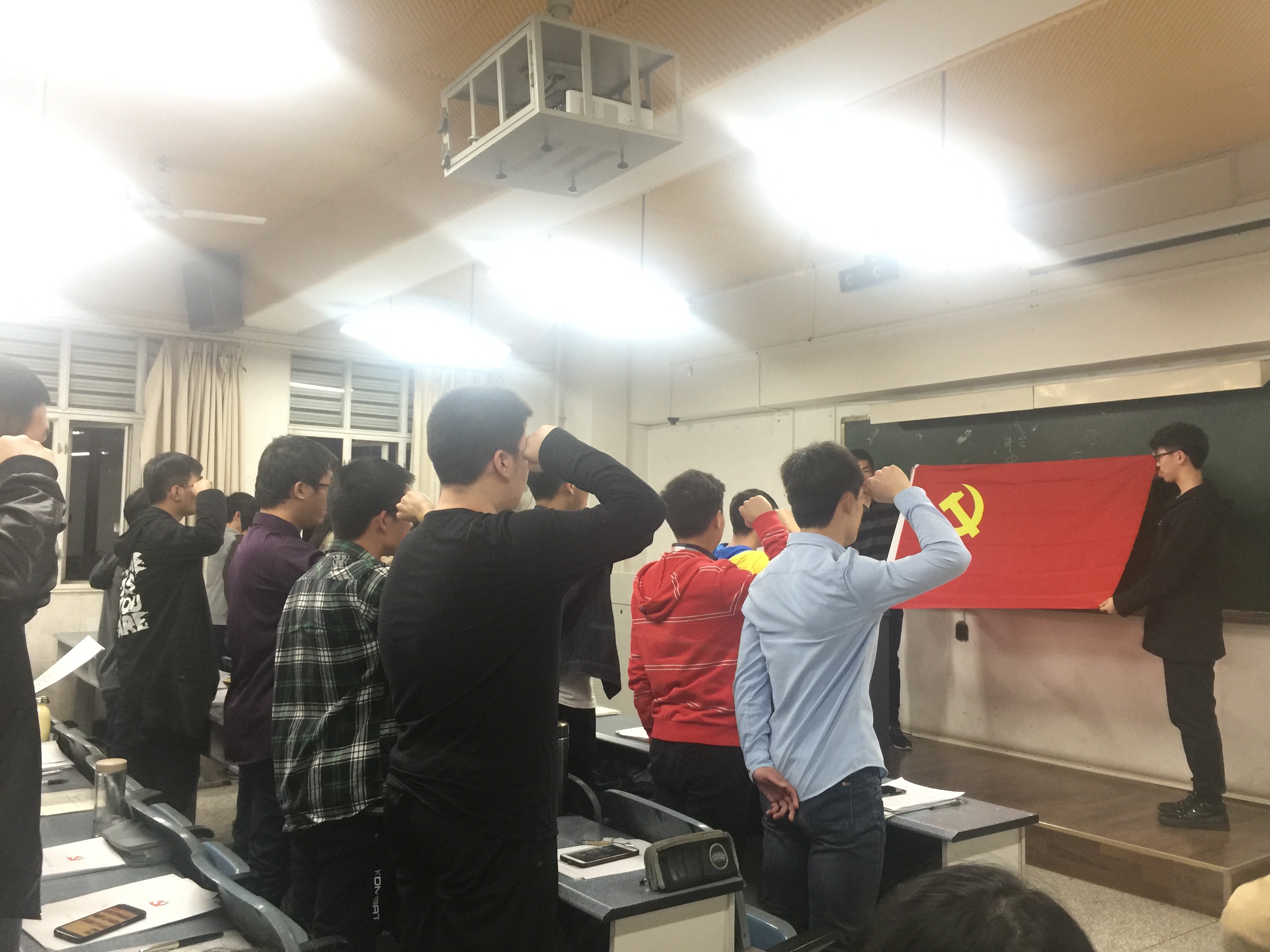 2014级学生党支部大会。参加此次支部大会的有本科2014级所有党员和预备党员,入党积极分子及部分群众代表。会议由组织委员何忠奇同志主持,会议主要内容包括预备党员转为中共正式党员,支部党员开展批评与自我批评。