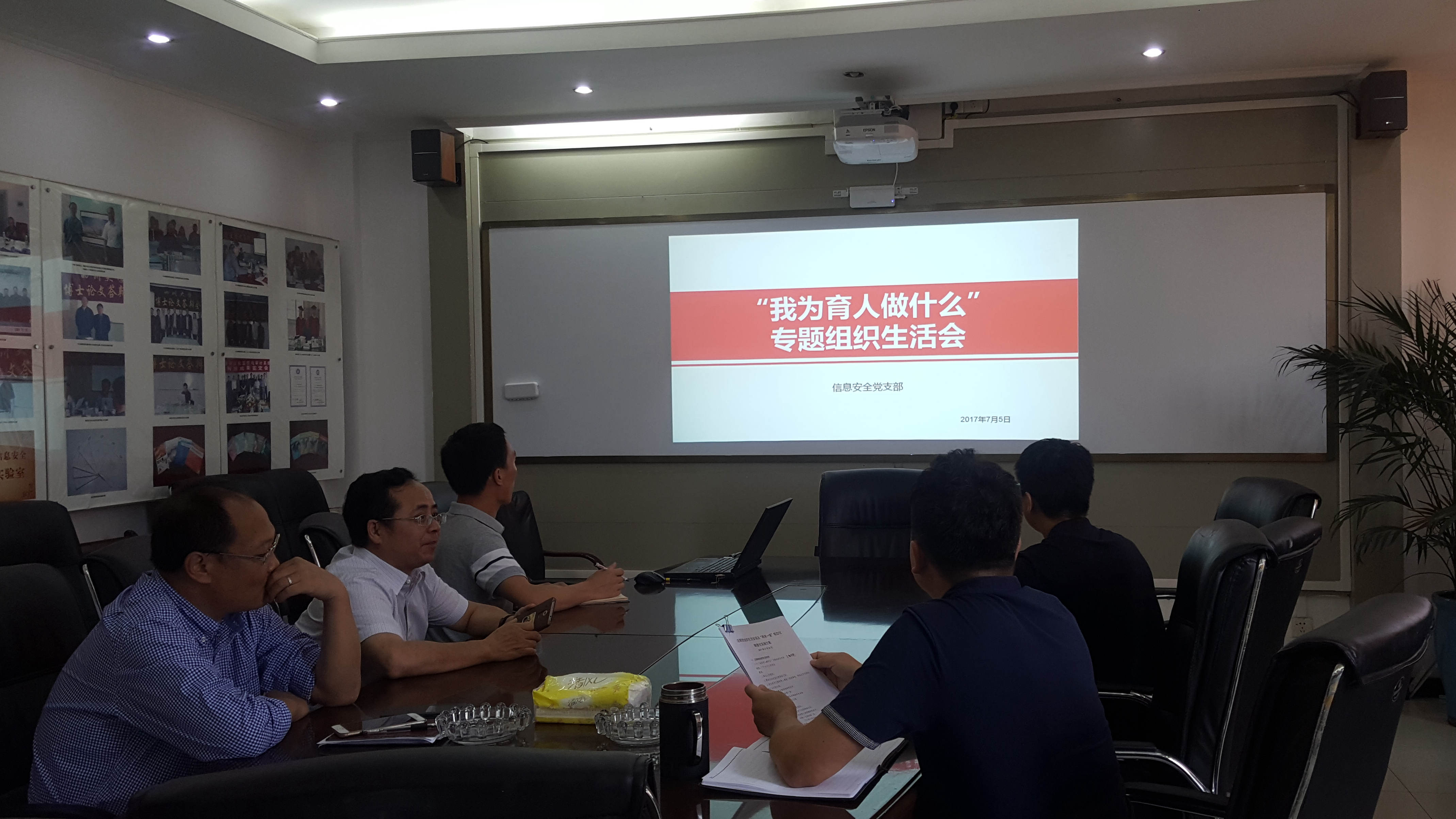 2017年7月5日,信安党支部在东三教五楼会议室举行了“我为育人做什么”专题党组织生活会。党支部全体党员出席了会议。会议由党支部书记刘亮老师主持。