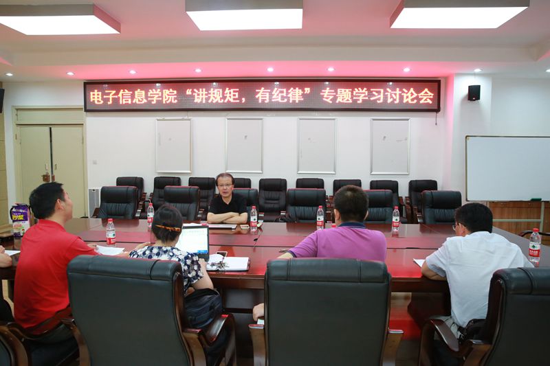 2016年7月1日下午,MX动漫 “讲规矩、有纪律”专题讨论会在基础教学楼A303会议室举行。副校长晏世经、全体院领导参加了会议。学习讨论会由院党委书记蒋斌主持。