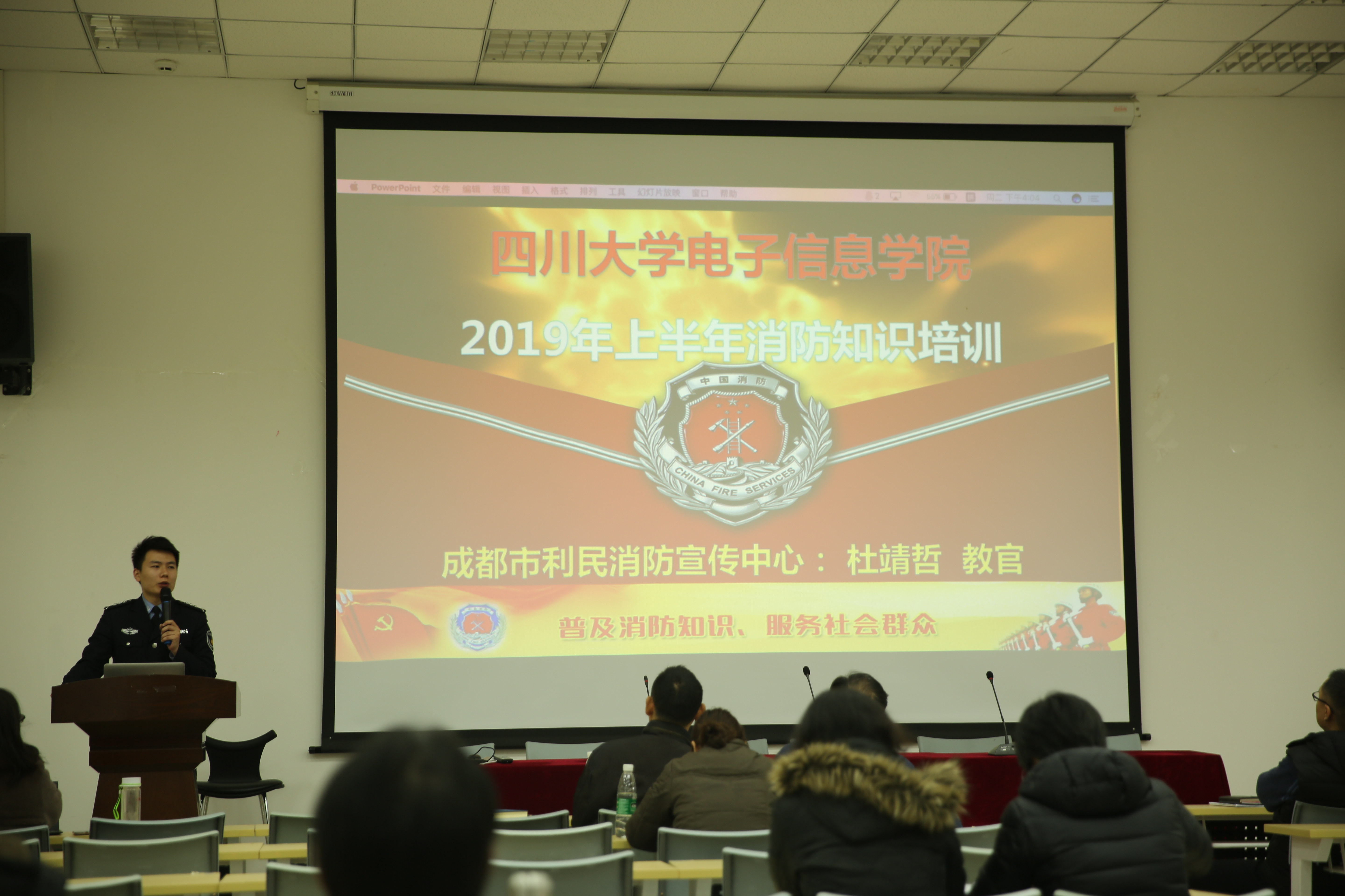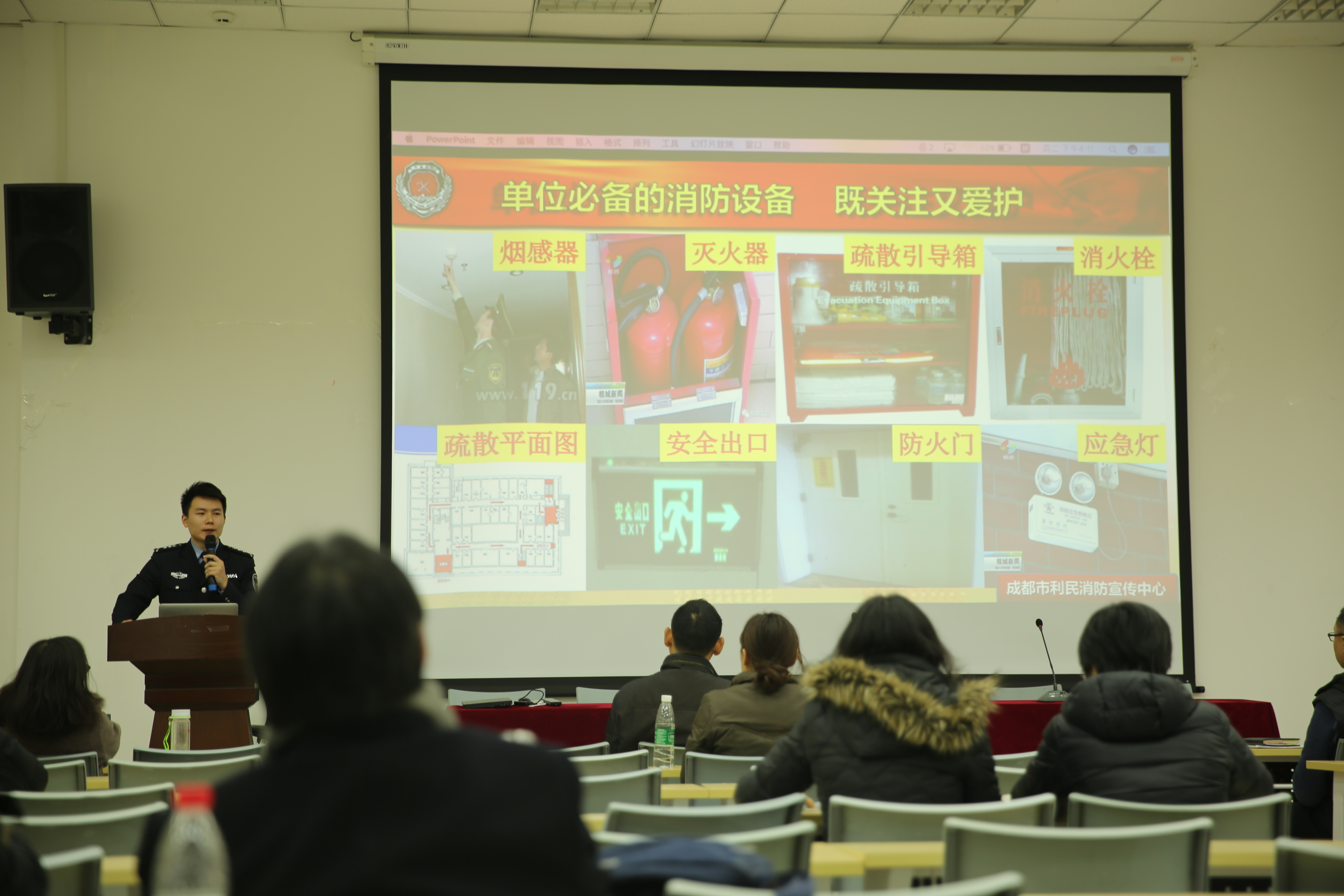 2019122日上午,在望江校区西五教学楼附101室,MX动漫 召开了专题消防知识培训会,学院全体教职工参加了本次培训,主讲人为成都市利民消防宣传中心杜靖哲教官。
